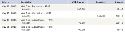 Selon la disponibilité de ses stocks, il se peut que le commerçant vous livre le premier article à 70 $ et envoie un règlement équivalant à ce montant. Dans un tel cas, le montant initial de 160 $ sera crédité à votre compte et le montant de 70 $ sera débité de votre compte. Quelques jours plus tard, lors de la livraison du deuxième article, le commerçant enverra un deuxième règlement au montant de 90 $.